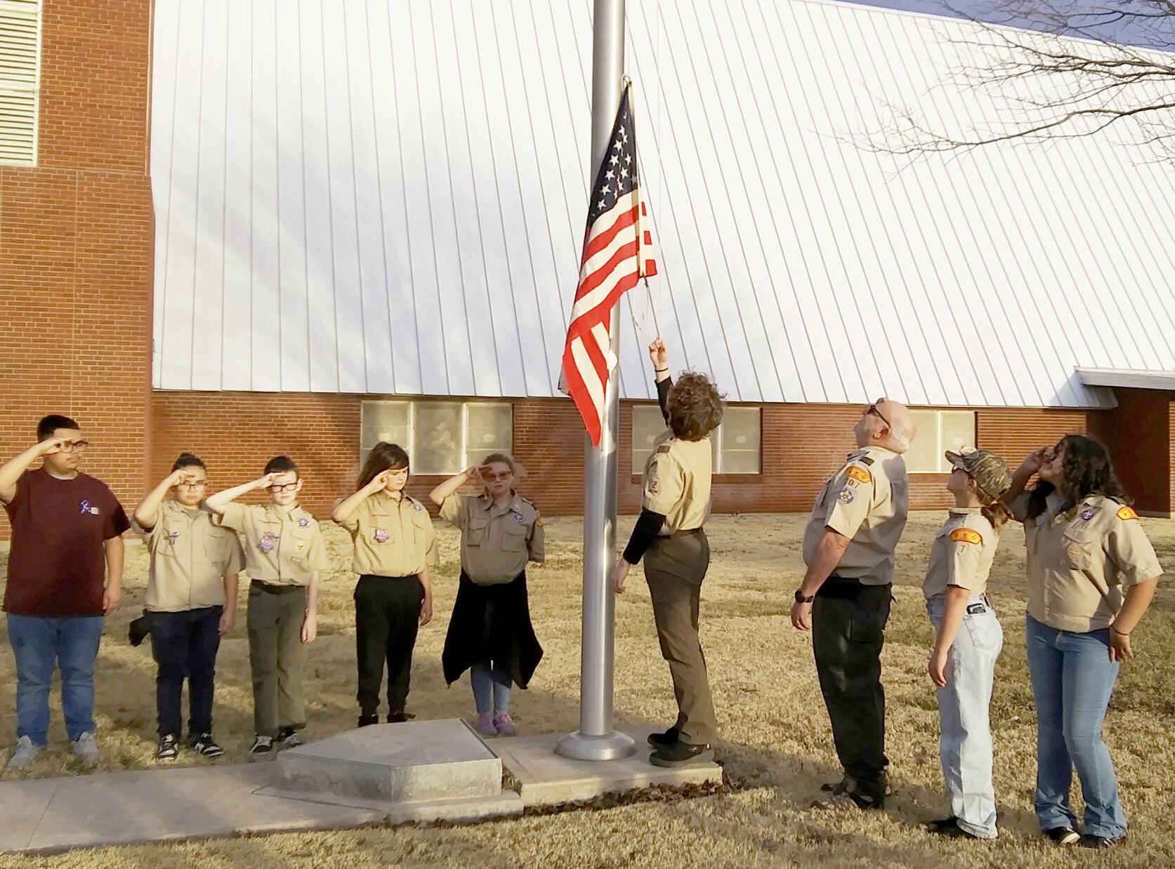 On Presidents Day, scouts from The Conquistador Council Troops 2, 7 and 72 participated in a flag raising at Trinity United Methodist Church t…