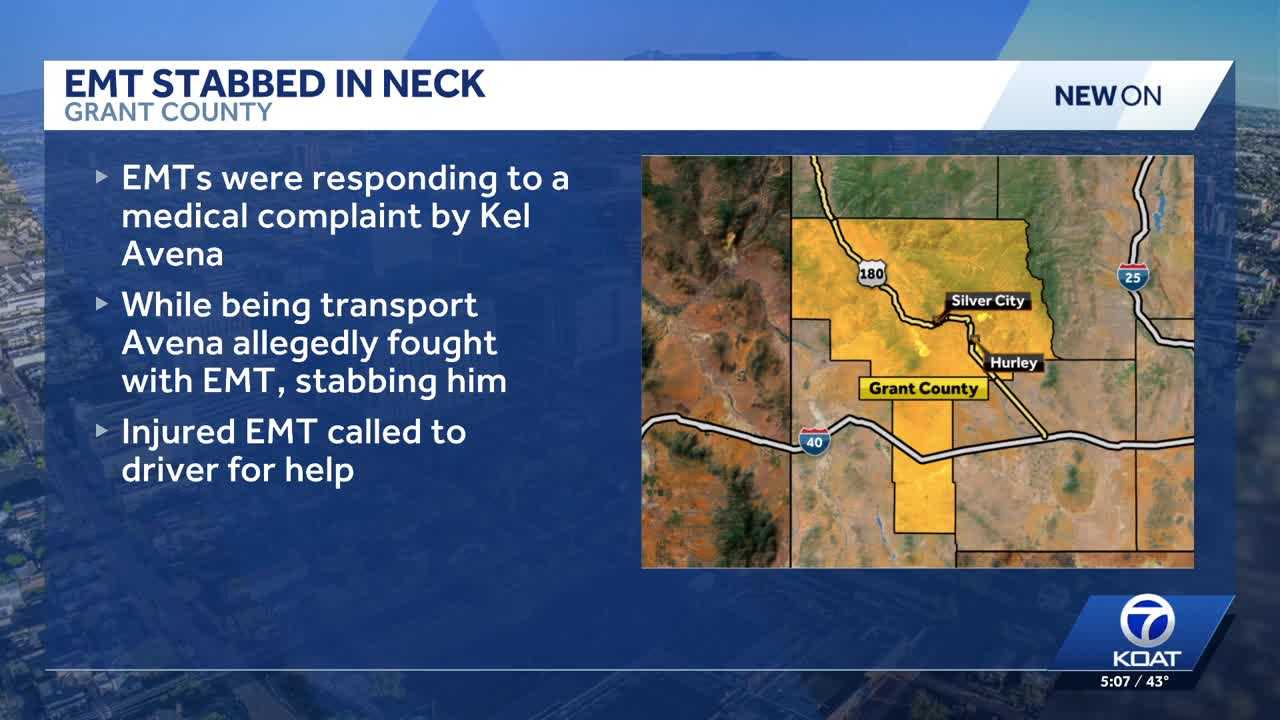 GRANT COUNTY, N.M. —An EMT worker was stabbed in the neck enroute to the Gila Regional Medical Center.Hospital EMS responded to a medical complaint involving 35-year-old Kel Avena, who was evaluated at his home and needed further care. Avena then was being transported to the medical center when a physical